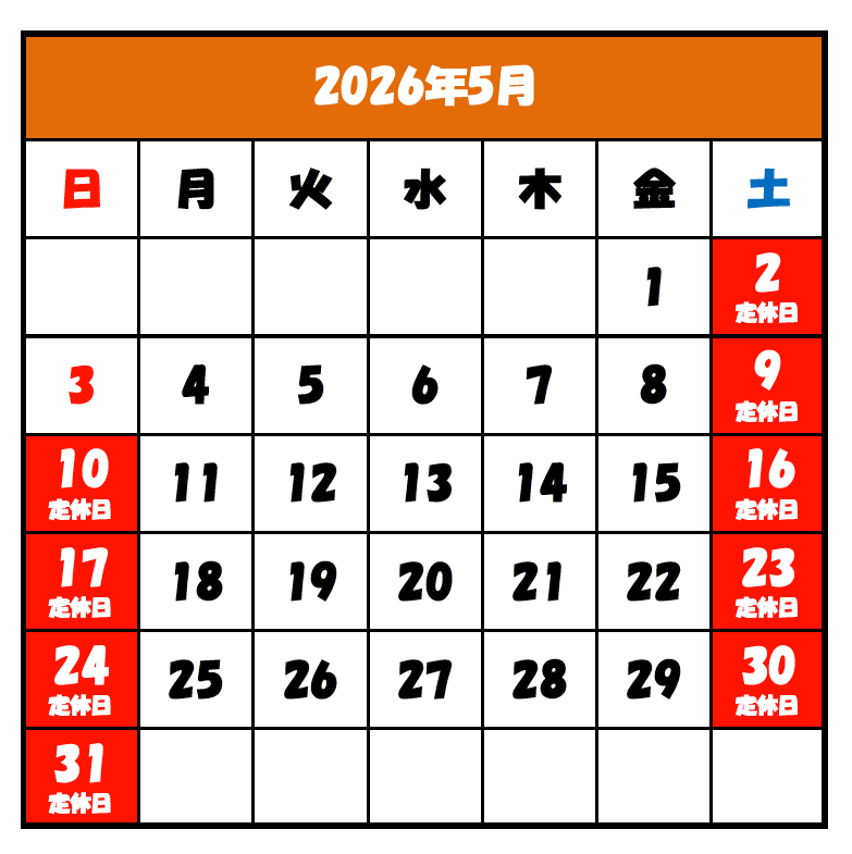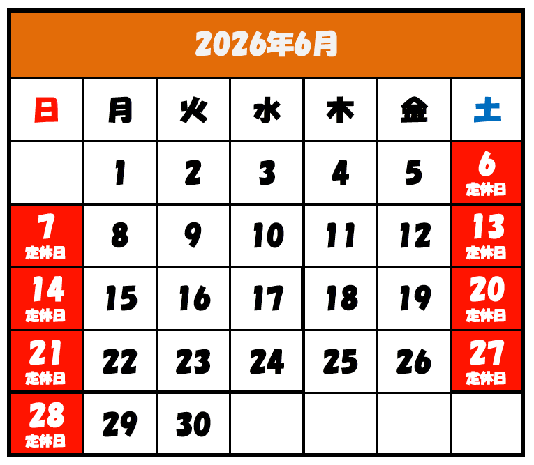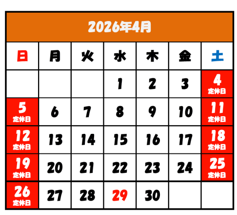 ※社内研修、社内行事などで予告なく定休日が変更になる場合がございます。予めご了承ください。